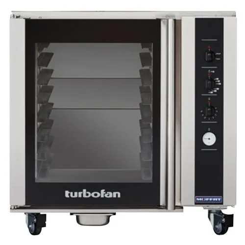 Designed to bake, proof, and keep foods warm, the Moffat E35D6/P85M8 Turbofan full-size electric digital convection oven with steam injection and an 8-tray holding cabinet/proofer is an essential addition to any restaurant, diner, or bakery preparing for high-volume meal periods. This convection oven features 12.5 kW of heating power and a two-speed bi-directional reversing fan system that distributes heat evenly throughout the oven, ensuring consistently cooked products. It can accommodate up to six full-size sheet pans with 4 1/8" spacing, providing ample vertical clearance.