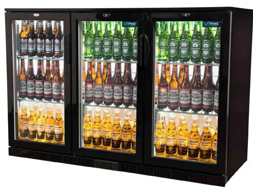 An aluminum interior with chrome shelving facilitates easy cleaning and enhances the display of the unit's contents. This product is ideal for all bar, hotel, or restaurant applications where a reliable, energy-efficient, and affordable bottle cooler is required. Unifrost is a major manufacturer of commercial refrigeration with a proven history in display chilling and added reliability.