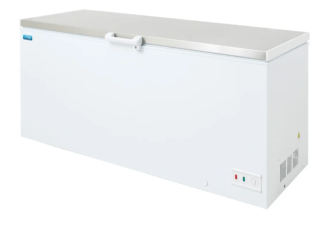 The Unifrost Professional Commercial Chest Freezer offers a low-cost solution to your frozen storage needs. Its stainless steel lid doubles as a hygienic food preparation surface, ensuring you do not lose any prep space when integrating this unit into your kitchen. Additionally, this commercial chest freezer is more affordable than many other units lacking a stainless steel lid, thanks to the competitive pricing of the Unifrost brand.