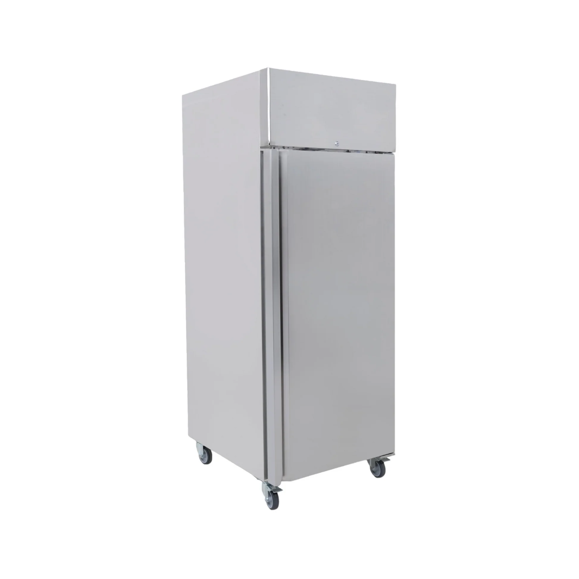 The UNIFROST R680SA is a professional-grade, single-door upright refrigerator crafted for commercial kitchens seeking both performance and efficiency. Its spacious GN 2/1 compatible interior holds up to 650 litres, supported by robust stainless steel construction and quality components for long-term reliability. The advanced digital controller ensures precise temperature management from +2°C to +5°C, while direct forced air cooling guarantees uniform temperature throughout. Fully ventilated and fitted with heavy-duty castors for easy movement, this fridge features energy-saving hydrocarbon refrigerant and high-density polyurethane insulation to minimise running costs and environmental impact. Adjustable shelving, a lockable door, and an easy-loading design make it a top choice for busy catering environments.