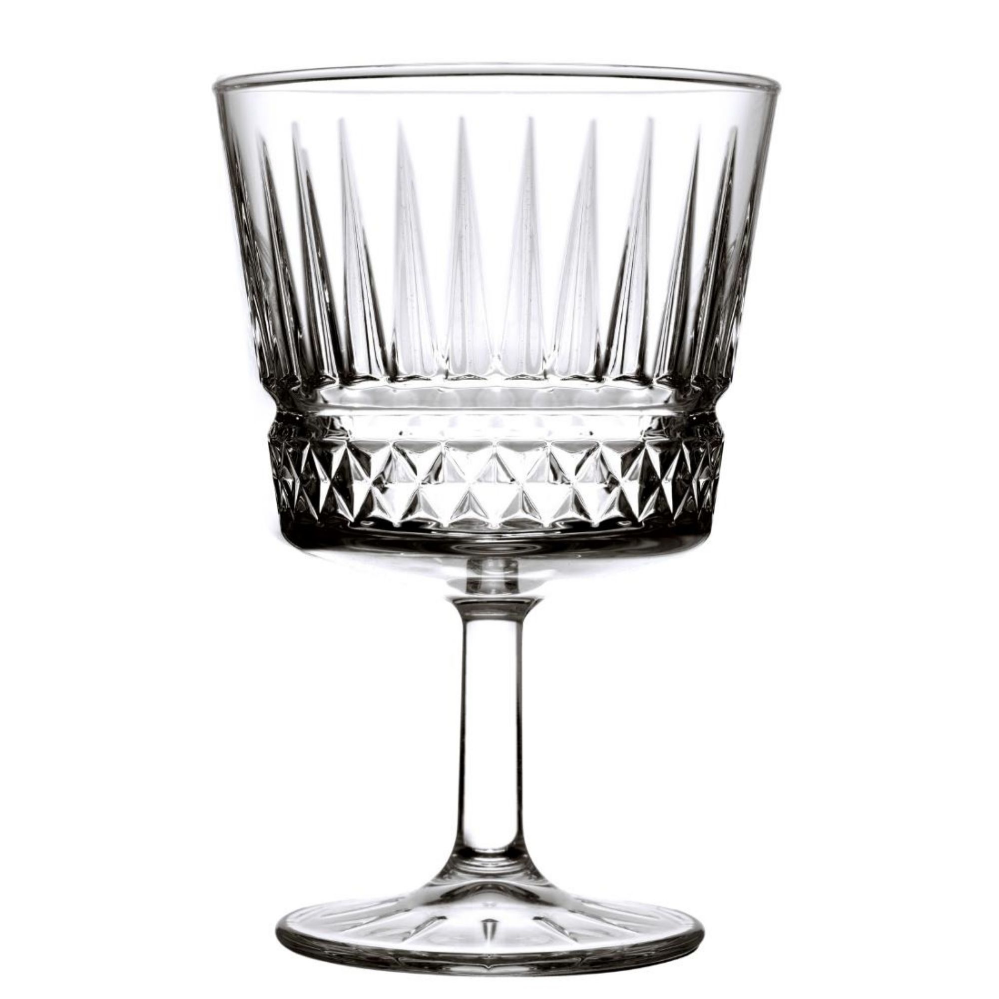 Shimmering with classic style, these 260ml Elysia goblets feature striking vertical cuts and details to add a unique style to your drink services.