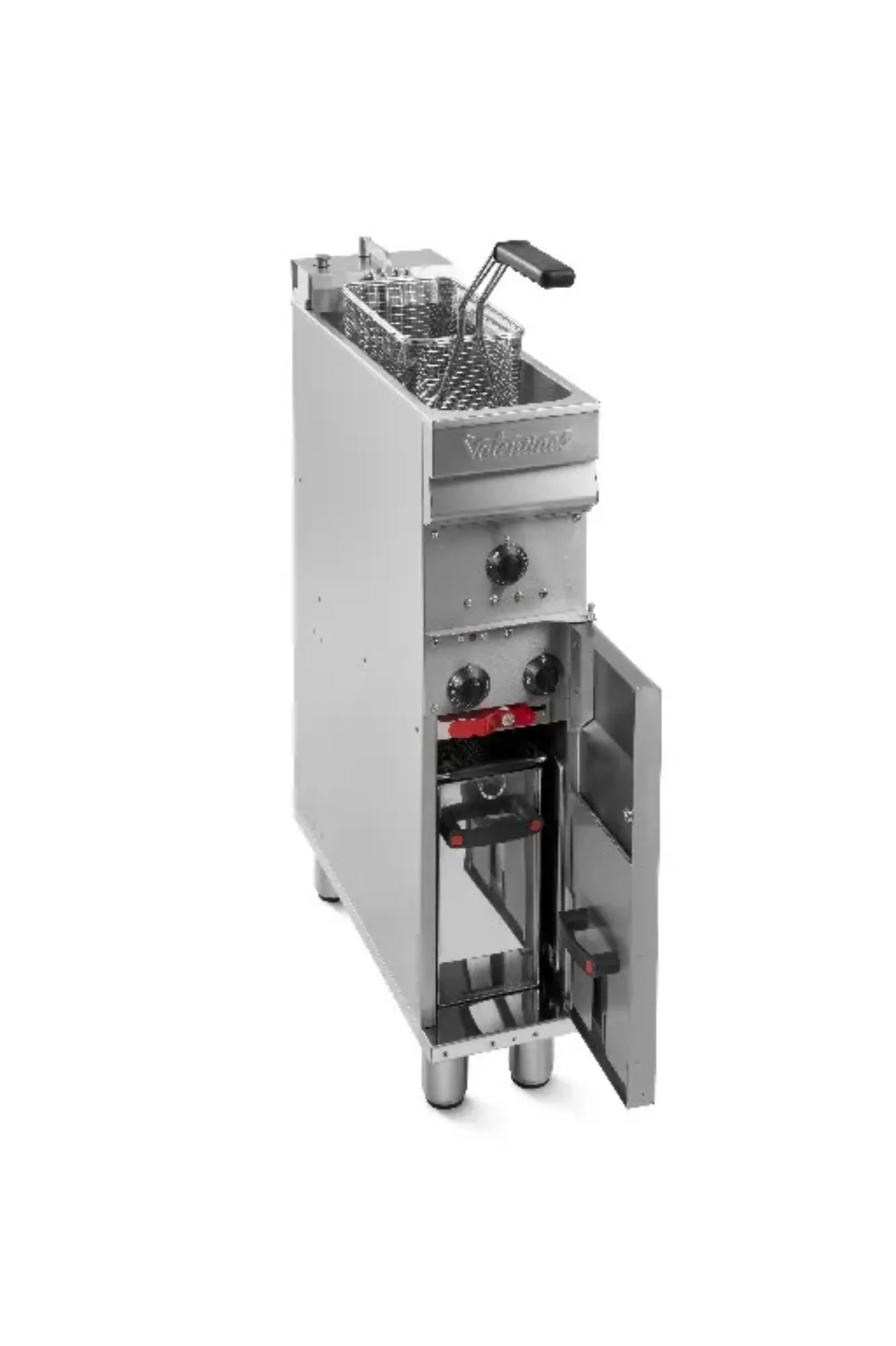 The Evolution series from Valentine offers a simple-to-operate, low-maintenance range of frying equipment designed to fit perfectly into any commercial kitchen. The fry pan is pressed from a single sheet of stainless steel and provides a durable, smooth, rounded, easy-to-clean profile. The reduced size cool zone ensures both energy efficiency and a high output to oil ratio. Combined with the ECO mode for economic preheating and/or solid fat melt cycle, quicker recovery times, and double insulation of the EVO range, users will benefit from reduced energy and oil costs without any compromise on output or food quality.