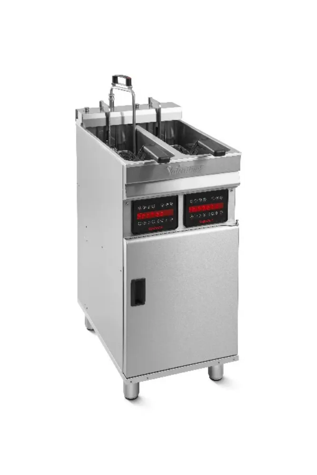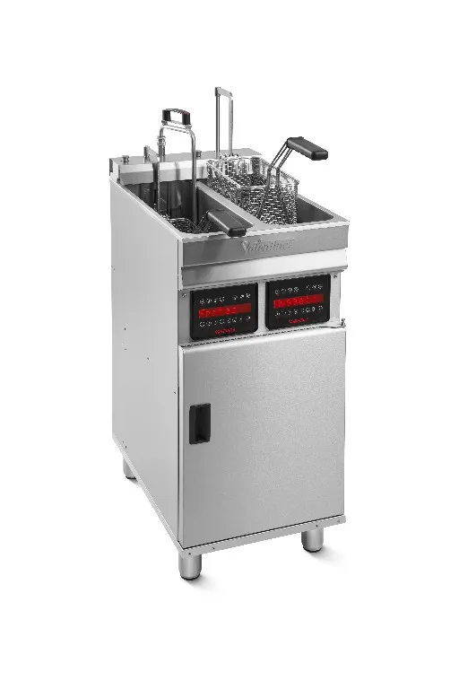 The Evolution series from Valentine offers a simple-to-operate, low-maintenance range of frying equipment designed to fit perfectly into any commercial kitchen. The fry pans are pressed from a single sheet of stainless steel, providing a durable, smooth, rounded, easy-to-clean profile. The reduced size cool zone ensures both energy efficiency and a high output to oil ratio. Fast pre-heat and recovery times are achieved thanks to the double insulated pans, so users will benefit from reduced energy and oil costs without any compromise on output or food quality.