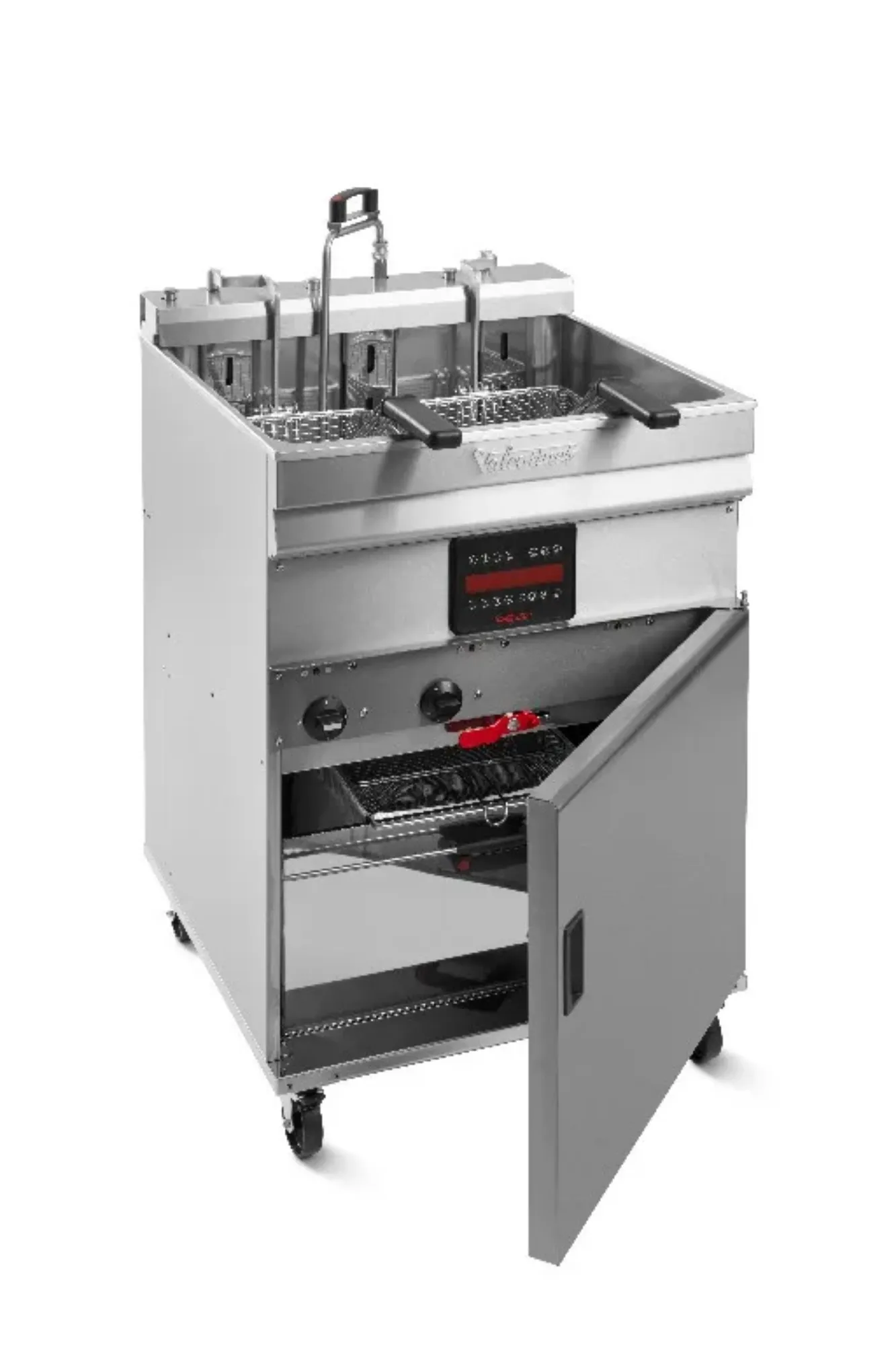 The Evolution series from Valentine offers a simple-to-operate, low-maintenance range of frying equipment designed to fit perfectly into any commercial kitchen. The fry pan is pressed from a single sheet of stainless steel and provides a durable, smooth, rounded, easy-to-clean profile. The reduced size cool zone ensures both energy efficiency and a high output to oil ratio. Fast pre-heat and recovery times are achieved thanks to the double insulated pan, so users will benefit from reduced energy and oil costs without any compromise on output or food quality.