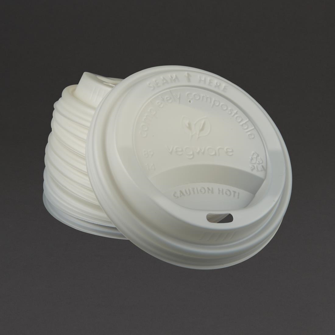 Keep takeaway drinks hotter for longer and prevent spills with these disposable hot cup lids from Vegware. These award-winning lids are the world's first 100% compostable hot cup lids. The plastic is made from corn, not oil, resulting in 79% less embodied carbon than traditional plastic lids. Supplied in boxes of 1000, these lids fit Vegware hot cup sizes 12/16oz and are perfect for large events or any location offering a carry-out service.