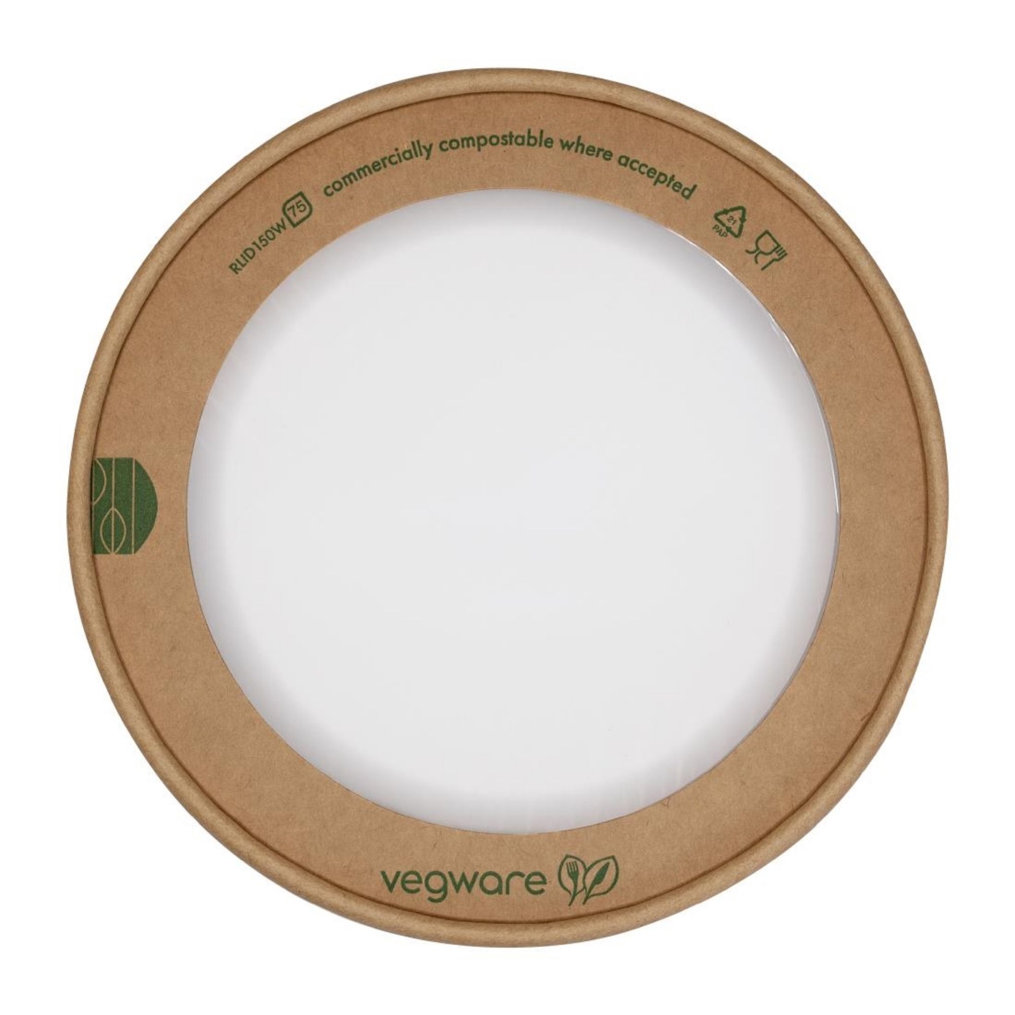 The lid sits securely on compatible containers and helps maintain product integrity during service and delivery. With a top diameter of 150mm and a slim profile, it's designed for efficient stacking and storage in busy catering environments. As part of Vegware's range of plant-based packaging, the lid is made for industrial composting. Once used, it helps divert waste from landfill and supports sustainability goals.