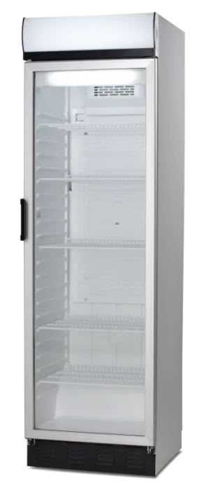 The FKG 410 is a full-height upright display cooler with a lit canopy, ideal for making your mark. It features low energy consumption and a small footprint. With a gross capacity of 381 liters (13.5 cu.ft), it can store 476 x 330ml cans or 231 x 500ml bottles, and is also suitable for hygienically storing food items. The cooler includes automatic defrosting and adjustable wire shelves.