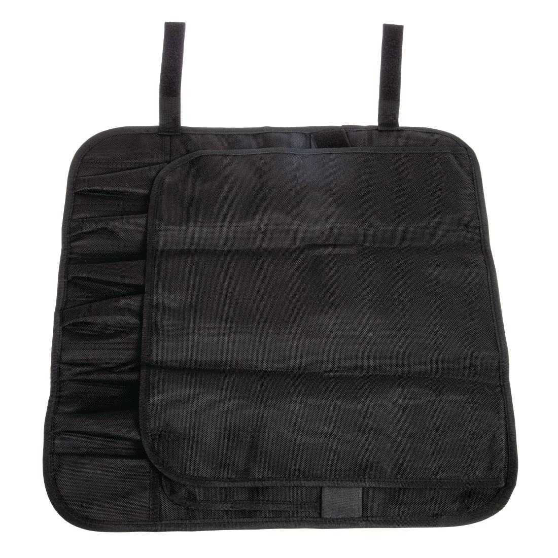 Effectively protect your precious knives with the professional knife roll bag from Victorinox. This roll bag features a total of eight individual sections, enabling it to hold a variety of knives, steels, and small utensils. Three of the compartments have an ergonomic cover that provides protection from knives impacting each other, while the dual flaps help to reduce movement, making it perfect for both long and short knives.