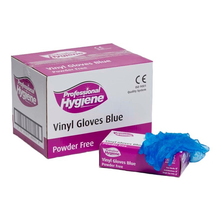 Professional Hygiene Vinyl Blue Powder Free Gloves Large