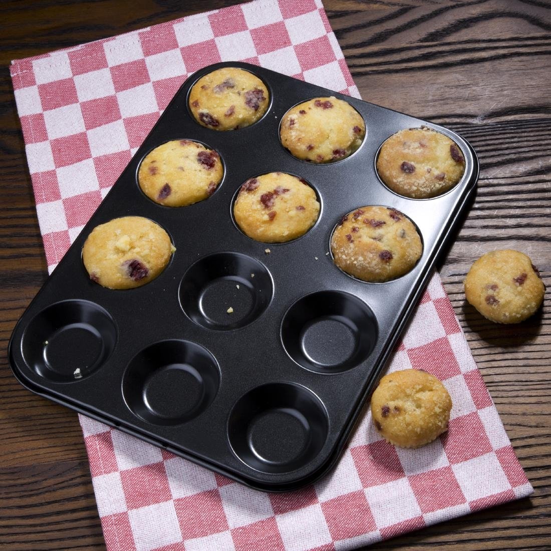 The non-stick mini-muffin tray is crafted from durable carbon steel and features a depth of 14mm. This tray is designed to provide even heat distribution for perfectly baked mini muffins every time. Its non-stick coating ensures easy release and effortless cleaning, making it an essential tool for any baking enthusiast.