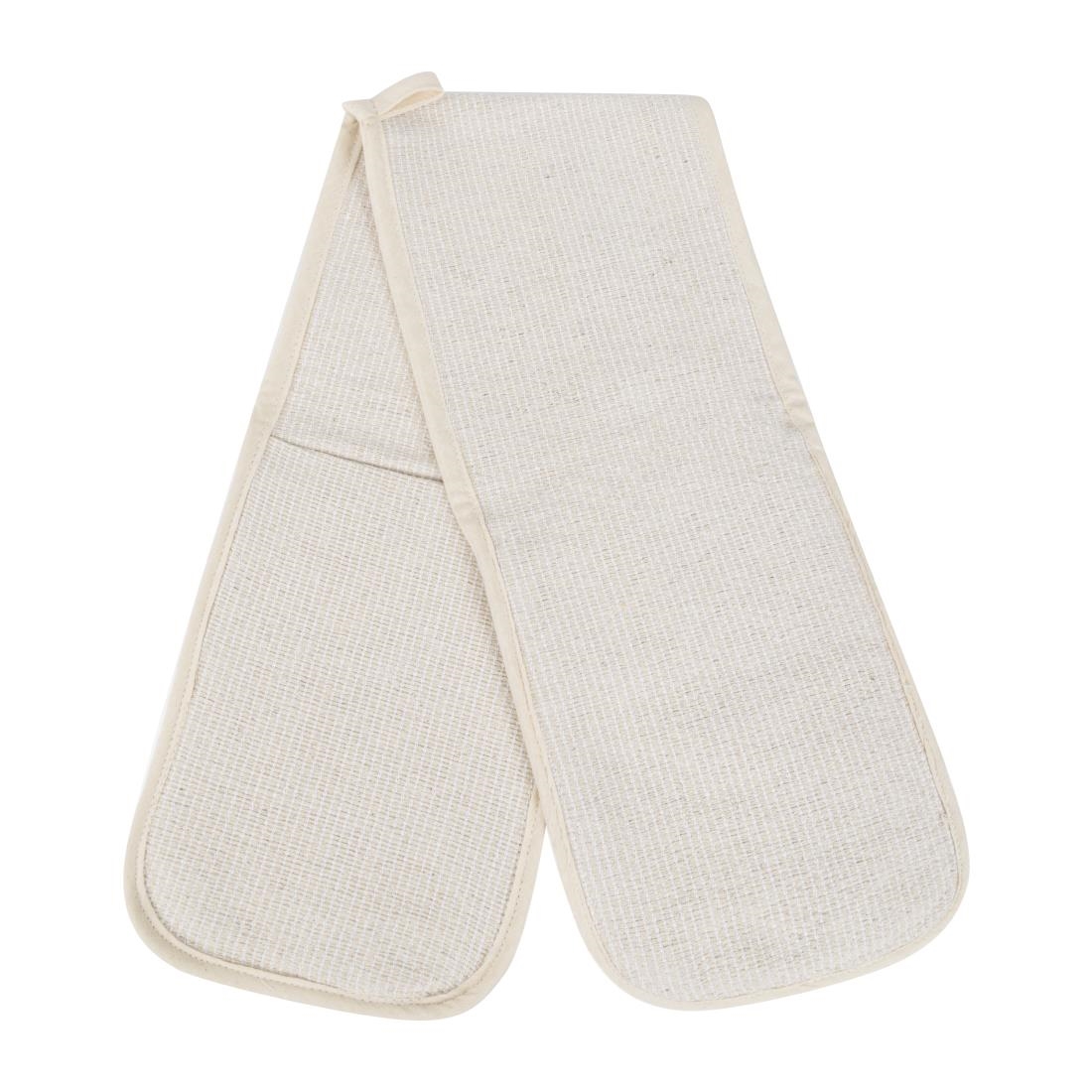 Ideal for any kitchen, the Vogue double oven glove helps keep hands protected when handling hot trays or tins. Whether lifting a cupcake tray or a full-size gastronorm, the gloves provide reliable heat protection while remaining lightweight and easy to use. Designed for two-handed use, they offer full coverage and control, and with the built-in hanging loop, they're always within reach when needed.