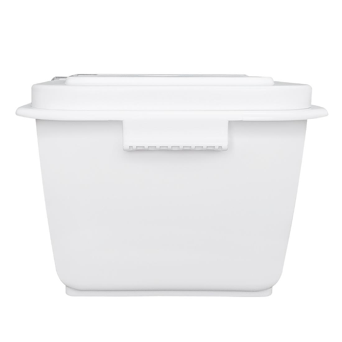 Made from tough, food-safe plastic, the Vogue ingredient bin 7.5Ltr resists the knocks of a busy service whilst a smooth interior wipes clean in seconds. The light build and integrated carry handles make repositioning effortless, and a tight-fitting lid locks out moisture and contaminants to keep contents fresher for longer. Portable, hygienic and built to last - a smart storage upgrade for any professional prep station.