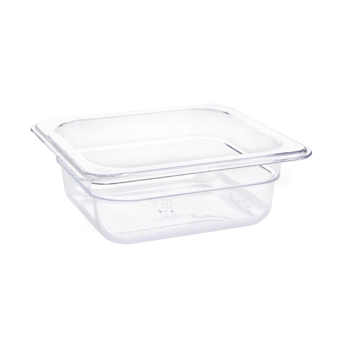 Virtually unbreakable polycarbonate remains cool to the touch for efficient handling. Lids and containers are dishwasher safe for easy cleaning. The temperature range is from -40ºC to 100ºC. The polycarbonate material is dishwasher safe, and pans have been designed to drip dry quickly. Containers are lightweight and stackable.