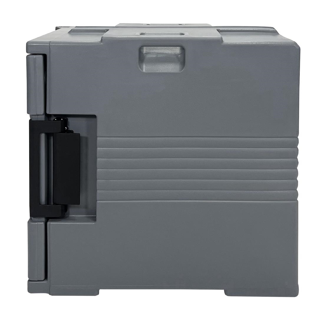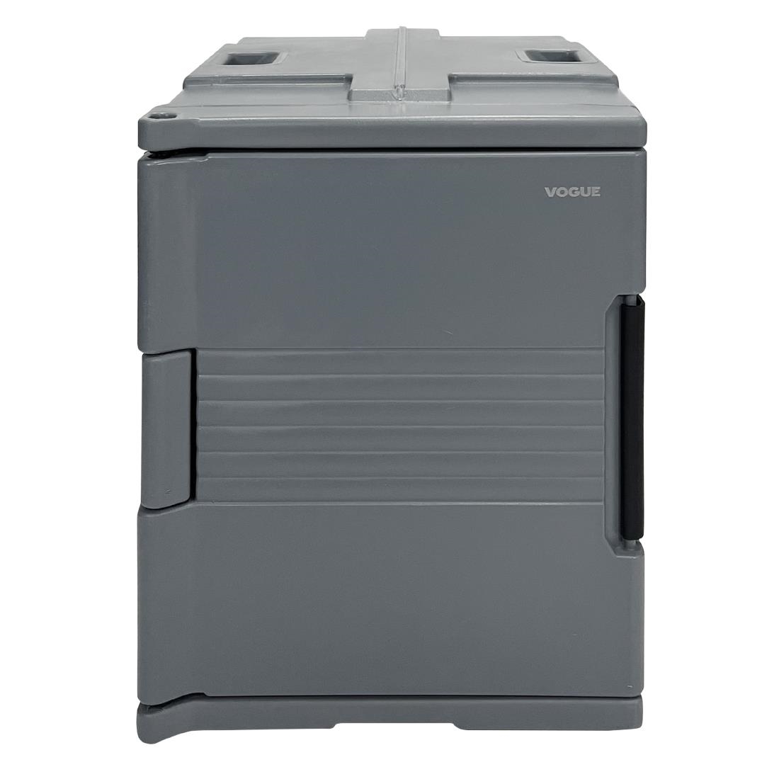The Vogue Thermal Box front-loading heavy-duty food transportation box is an excellent solution for maintaining the temperature and quality of food during transportation between areas. Lightweight and easy to maintain, the Vogue heavy-duty transport boxes are made from low-density polyethylene (LDPE), which is both very durable and long-lasting. These properties make food much easier to transport in the boxes, even when full. For added convenience, these boxes are stackable, saving valuable space whether they are loaded onto a trolley, racking, or even the back of a van. This box is suitable for transporting gastronorm trays.