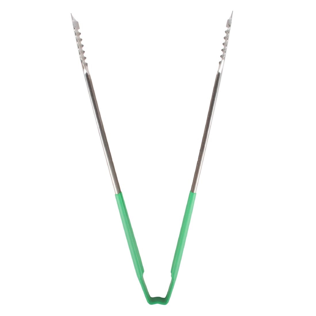 The 16" green Vollrath Versagrip flat tongs are a fantastic combination of outstanding durability, efficiency and versatility.