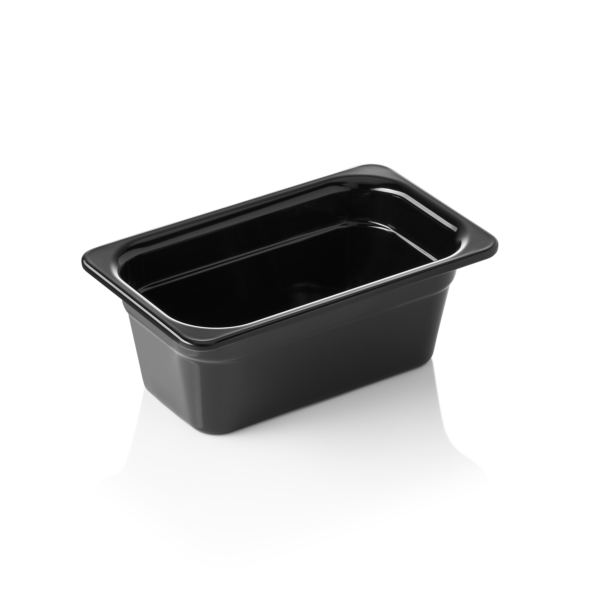 Designed for busy service, the WAS Germany GN 65 BLACK 1/4 GN container delivers clean presentation and dependable performance across buffet lines and prep stations. This 100 mm deep melamine container keeps salads, sides and garnishes neatly organised while standing up to heavy commercial use as part of your catering equipment. Constructed from heavy-duty melamine that’s stackable and shock-resistant, it shrugs off knocks in the pass and at self-serve counters and stacks neatly to save space. The sleek black finish frames food beautifully, boosting perceived freshness in chilled displays. Lightweight at just 0.7 kg, it’s easy to handle during fast changeovers, yet dimensionally stable so it sits flush in GN wells and chafers. Hygienic, non-porous material supports high standards in the professional kitchen and front-of-house service. With a generous 2.8 L capacity, it suits high-volume batches without constant refilling.