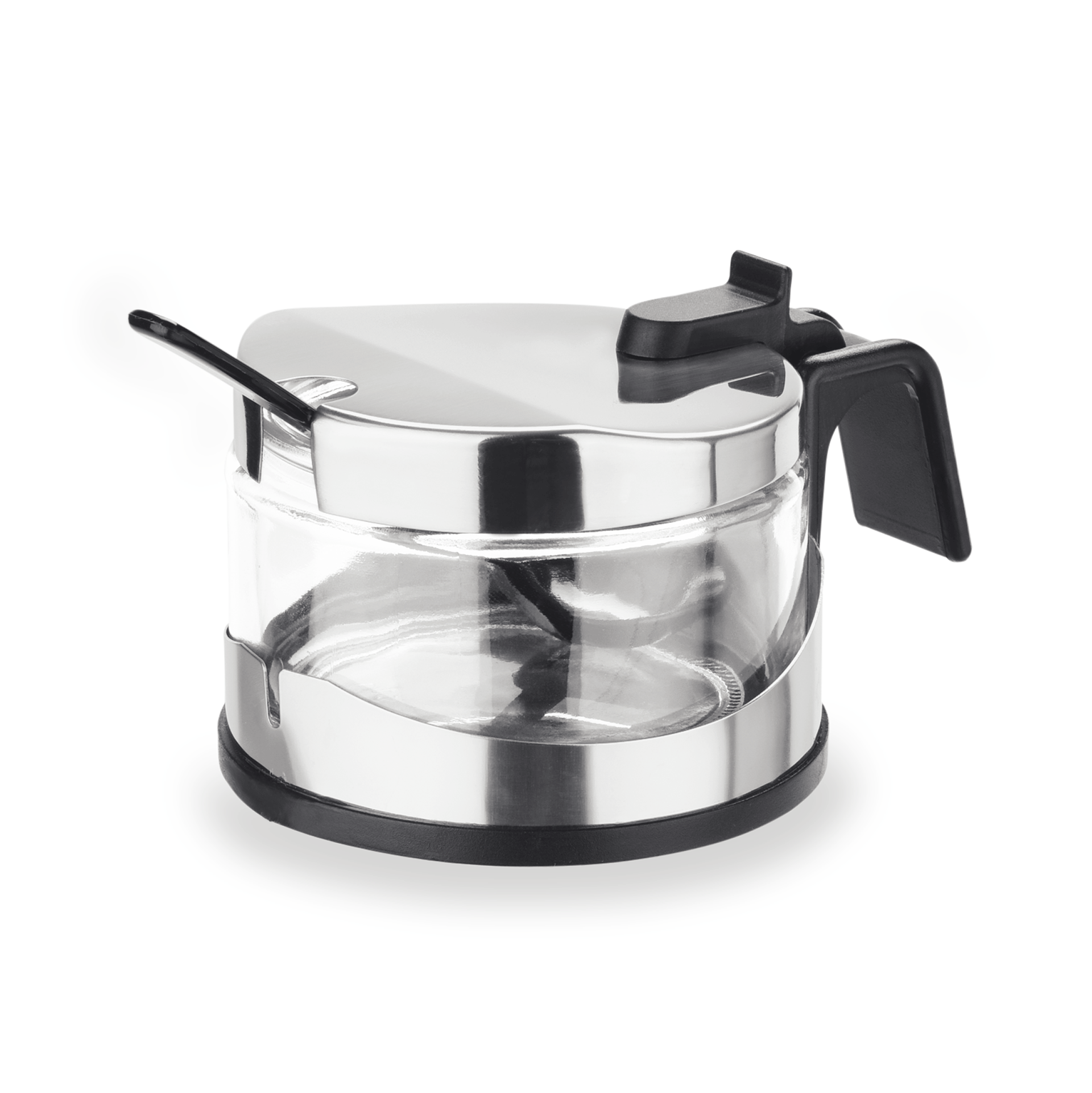 With a compact 9 cm diameter, it saves valuable space on tables and buffet counters while offering practical capacity for busy periods. The clear glass container makes contents instantly visible, helping staff monitor levels and top up quickly. Chrome nickel stainless-steel elements deliver long-wearing durability and a refined finish, while the simple construction with plastic details ensures a snug fit and comfortable handling. It sits securely on counters to minimise spills, and its straightforward design makes refilling and routine cleaning fast for the professional kitchen.