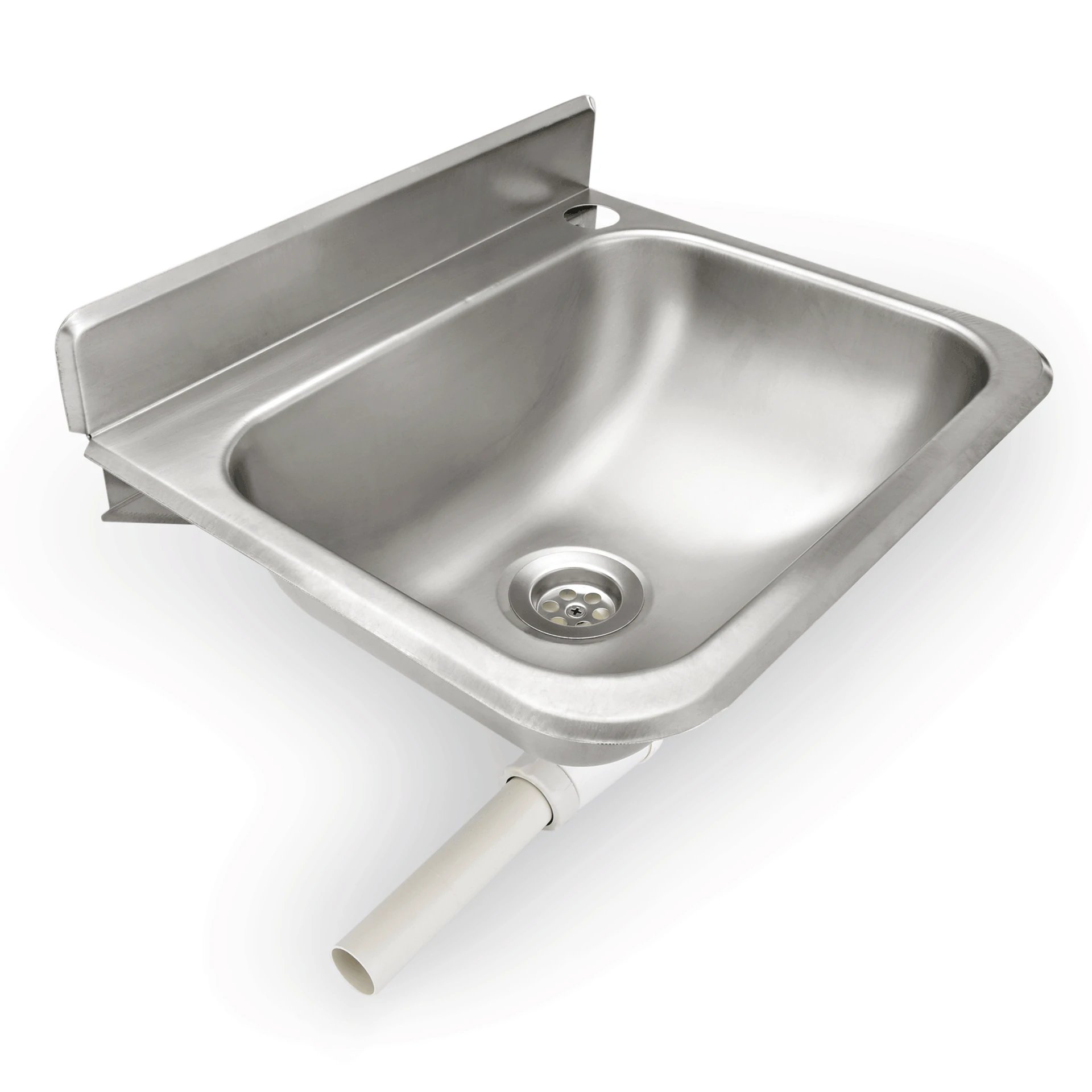 The wall-mounted unit comes with a drain fitting included in the delivery. It features a pre-drilled hole for taps, ensuring easy installation and convenience.