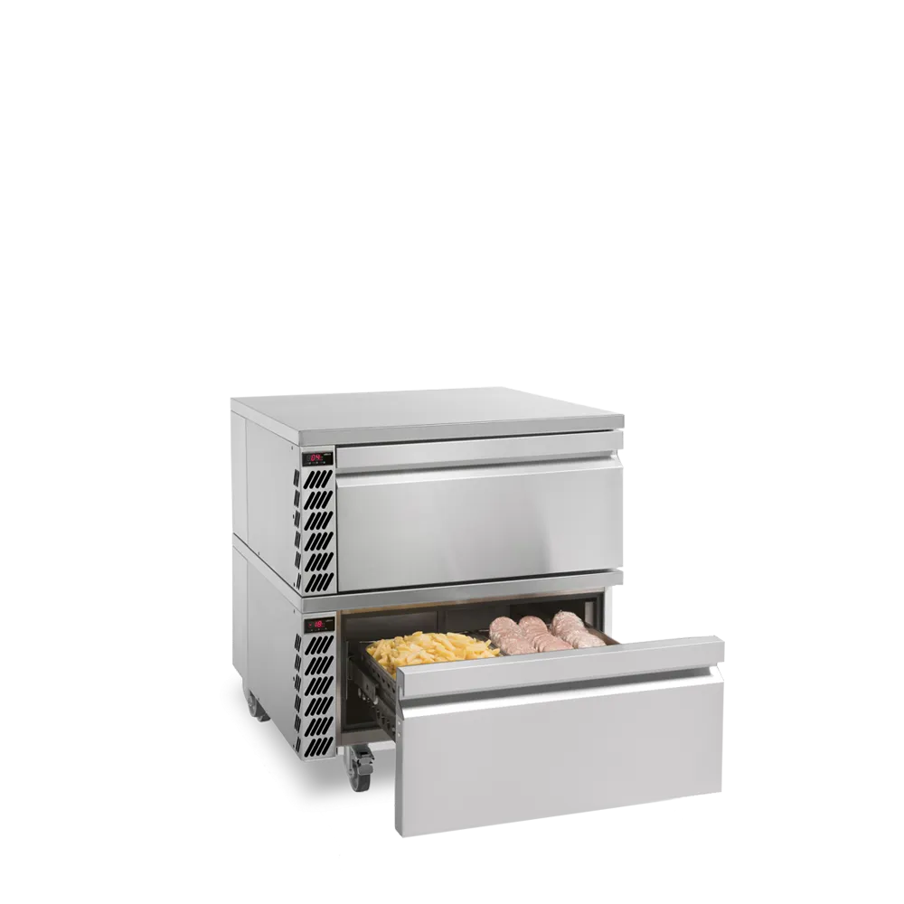 The robust construction of our Chef Drawers means that two fridge drawers can be stacked, doubling the footprint capacity. This design also offers the option to stack in variable temperature mode, allowing for use as either a fridge or freezer.