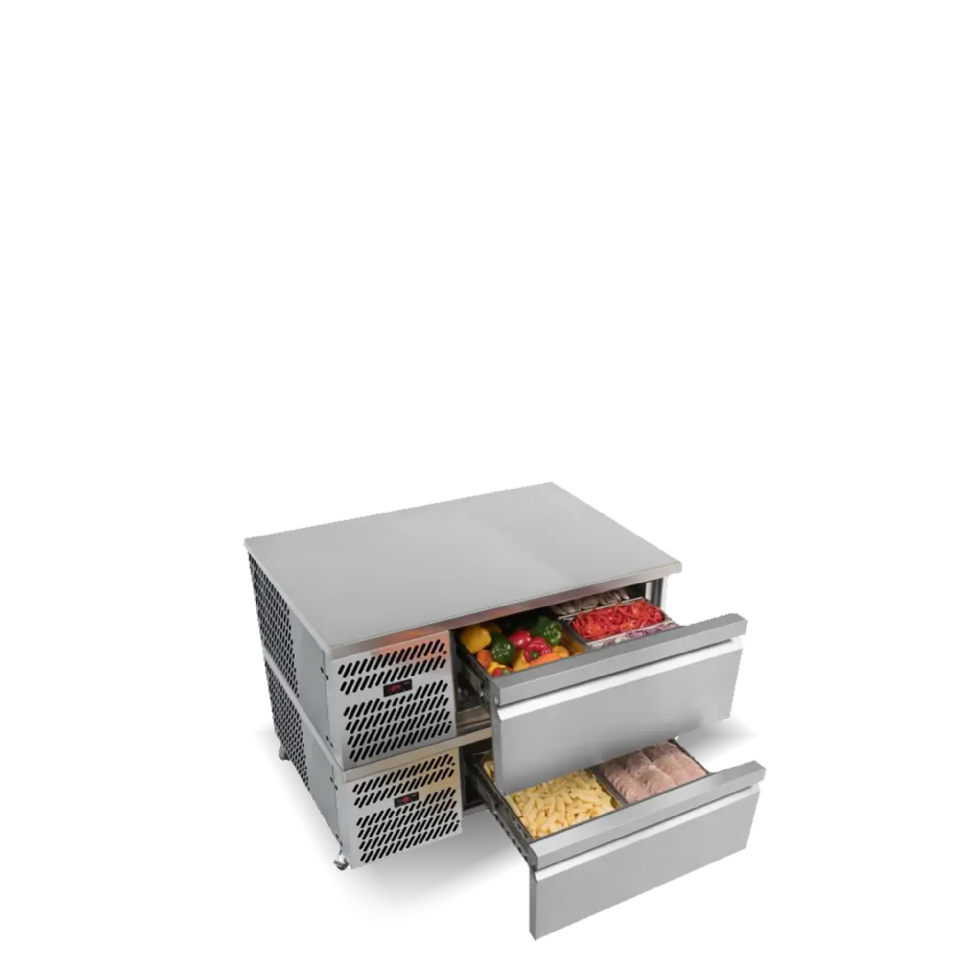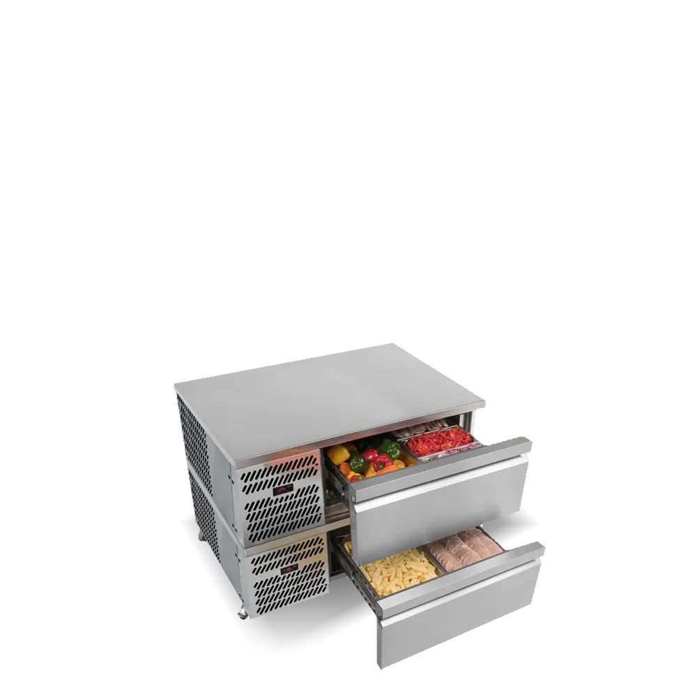 The robust construction of our Chef Drawers means that two fridge drawers can be stacked, doubling the footprint capacity. This design also offers the option to stack in variable temperature mode, allowing for use as either a fridge or freezer.