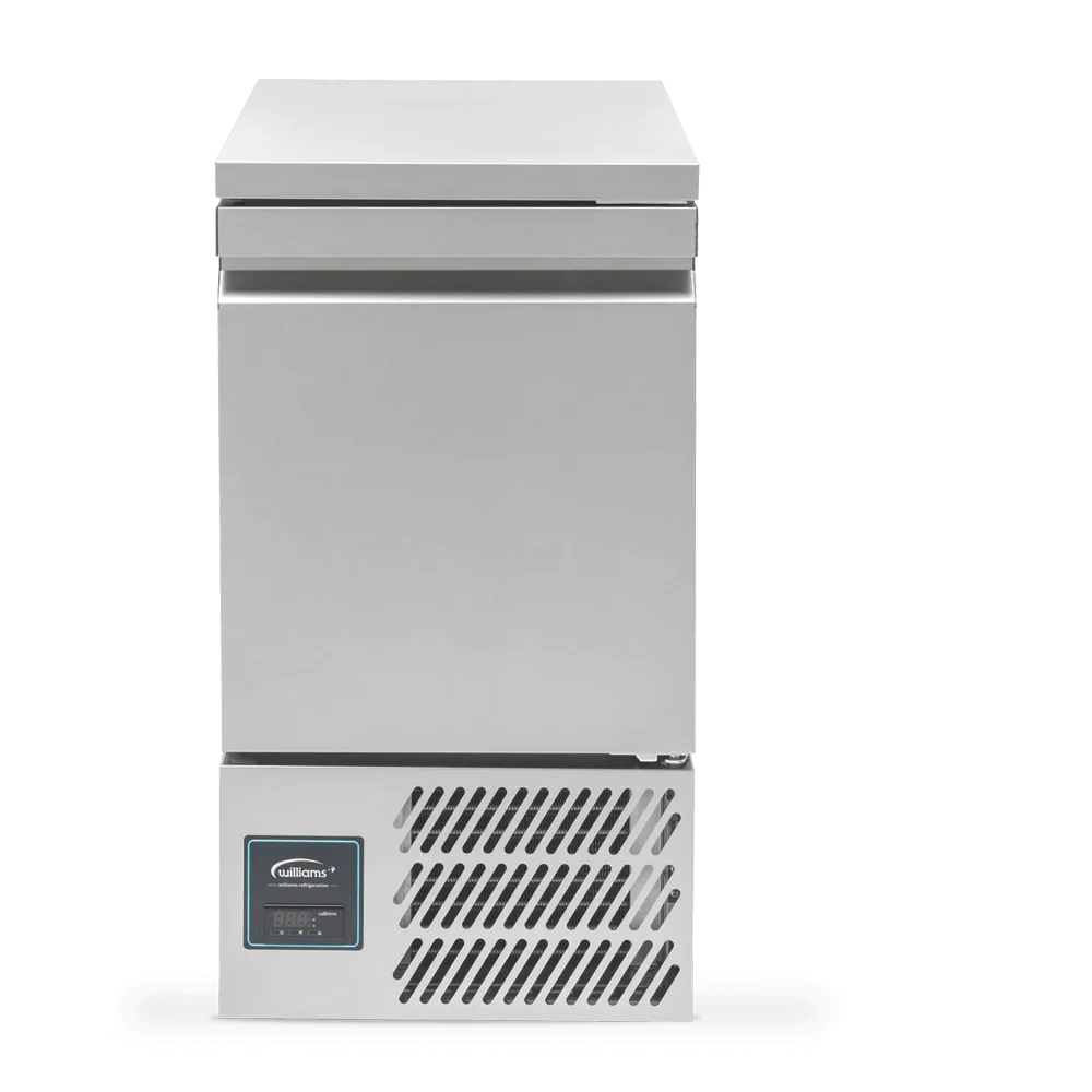 The Aztra AZ5CT is a slimline, front-vented 1/1GN storage counter featuring an integral stainless steel countertop. It offers a capacity of 109 litres. The newly improved refrigerated model now boasts an impressive A+ energy grade.