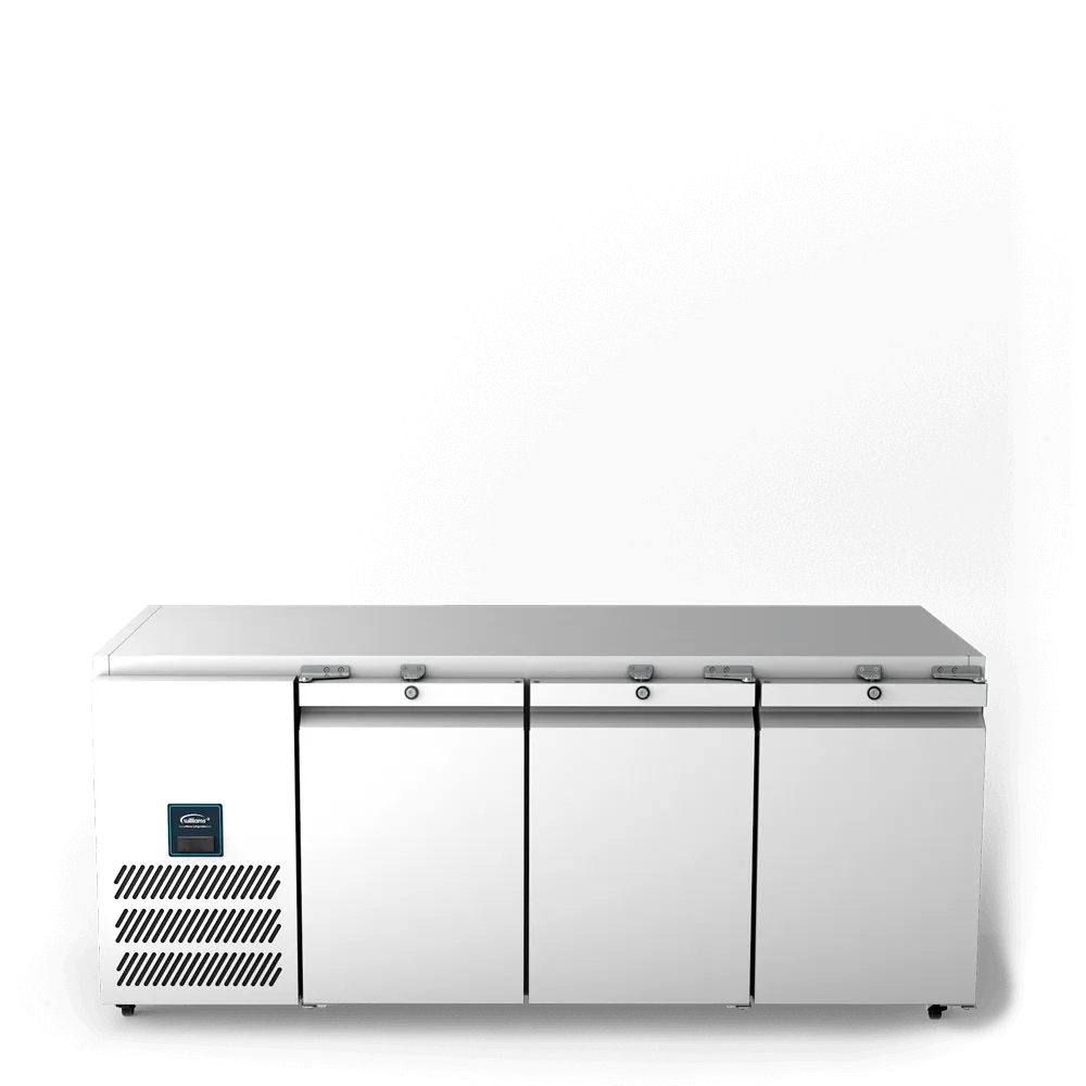 The reduced height of the JBTC3 three-door refrigerated counter allows it to sit below an existing worktop, creating a seamless and hygienic work area. Designed to accept standard gastronorm shelves and pans, the Jade Biscuit Top counter offers a powerful combination of durable, high-powered refrigeration and outstanding value.