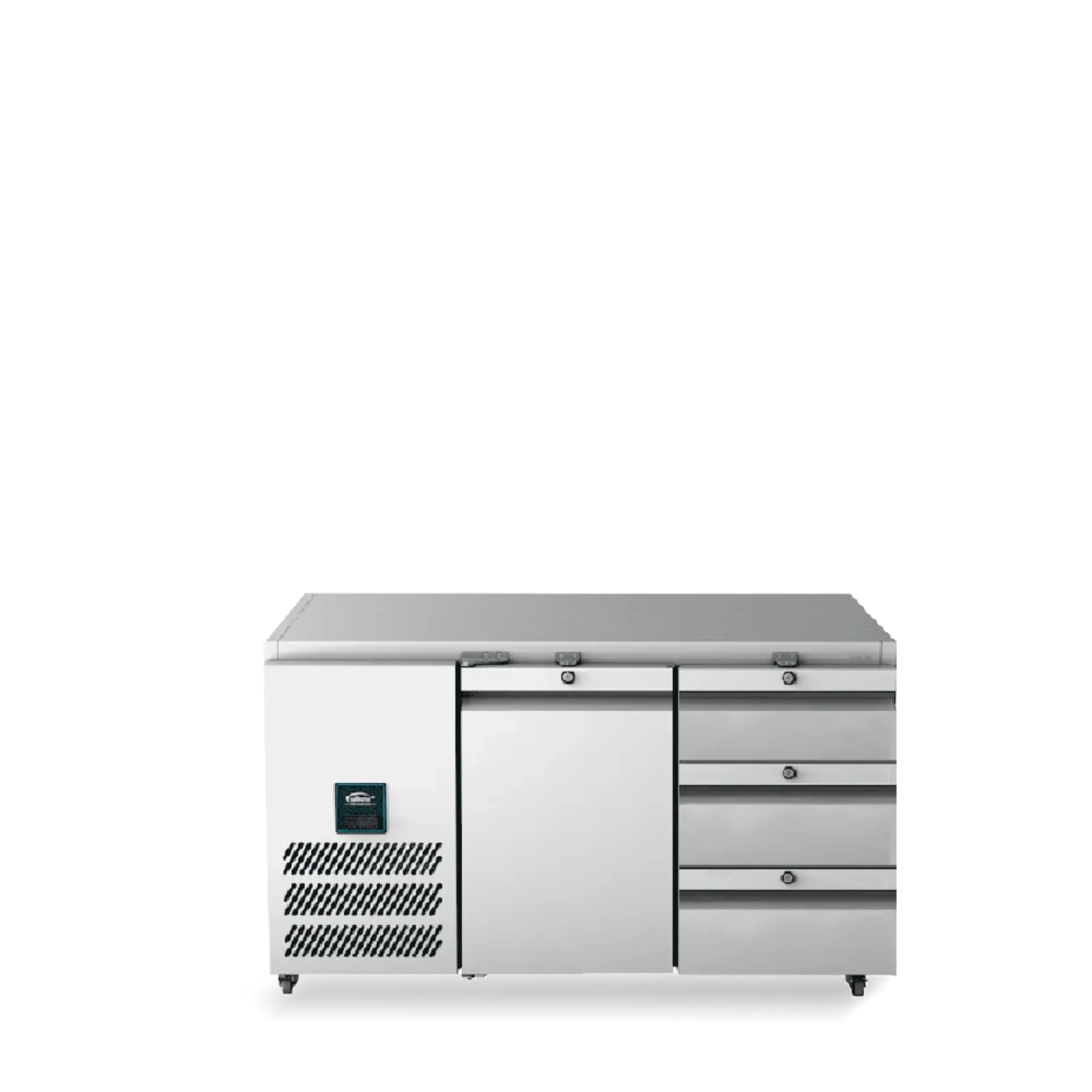 The Jade JBTC2 is a two-door biscuit-top gastronorm counter, specifically designed without a worktop. It is intended to fit neatly below a stainless steel prefabricated worktop.