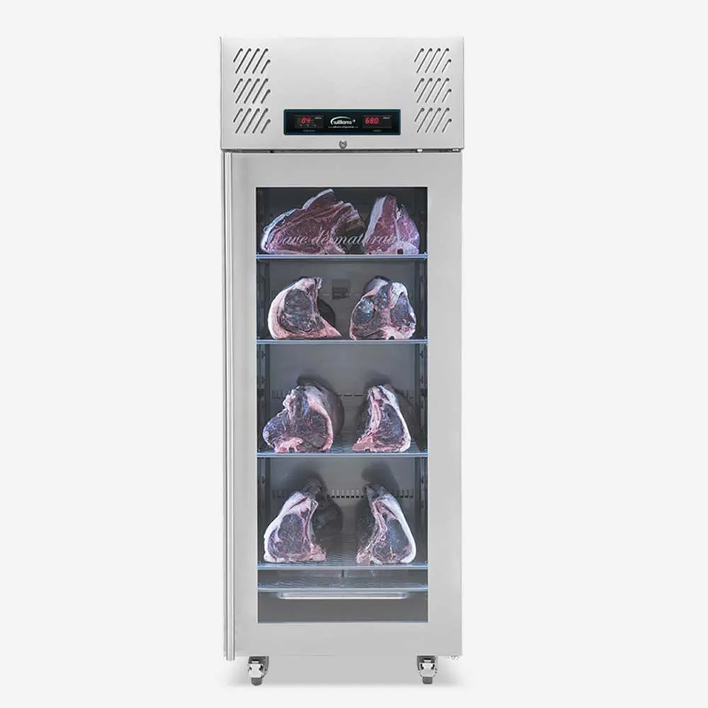 The stylish design is combined with a robust, all stainless steel construction. The meat ageing refrigerator is capable of operating in environments of up to 43°C, and its interior is brightly lit with energy-saving LEDs, making it ideal for front-of-house display. The perfect meat ageing conditions are maintained by providing humidity between 60-90%, along with the inclusion of Himalayan salt blocks that assist with moisture management and improve the flavour of the meat.
