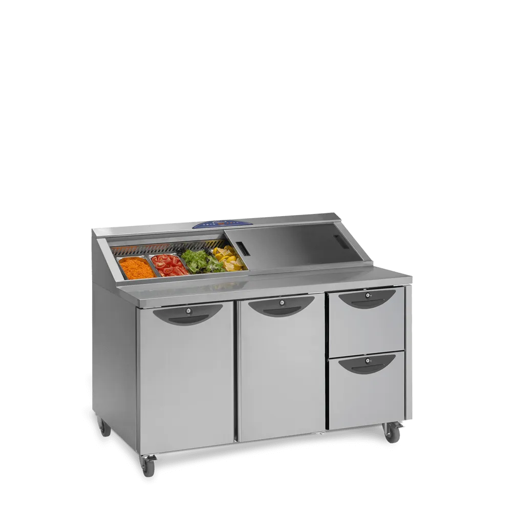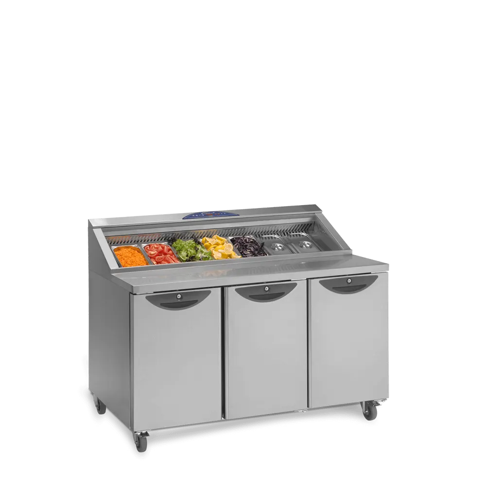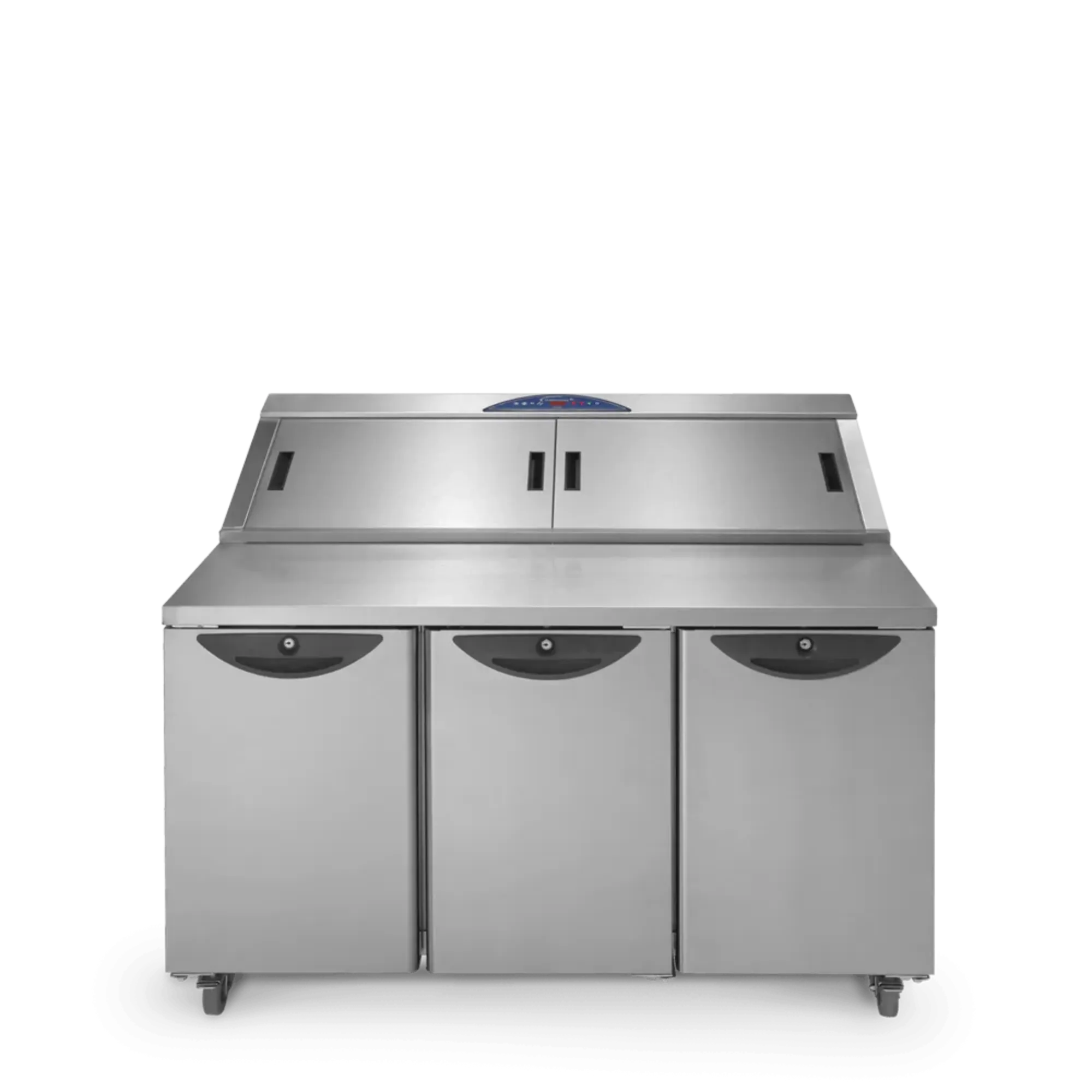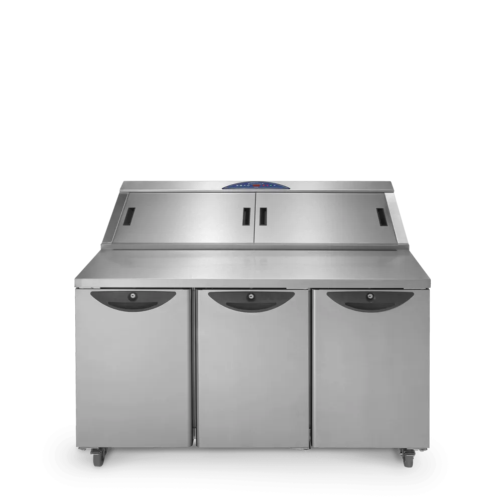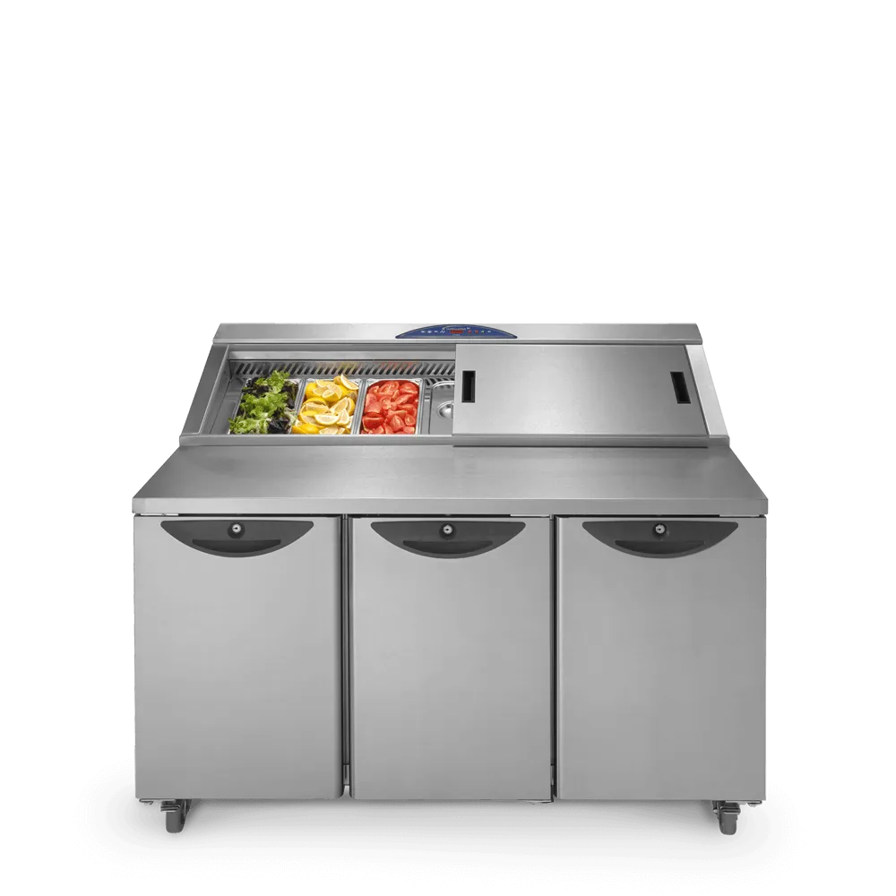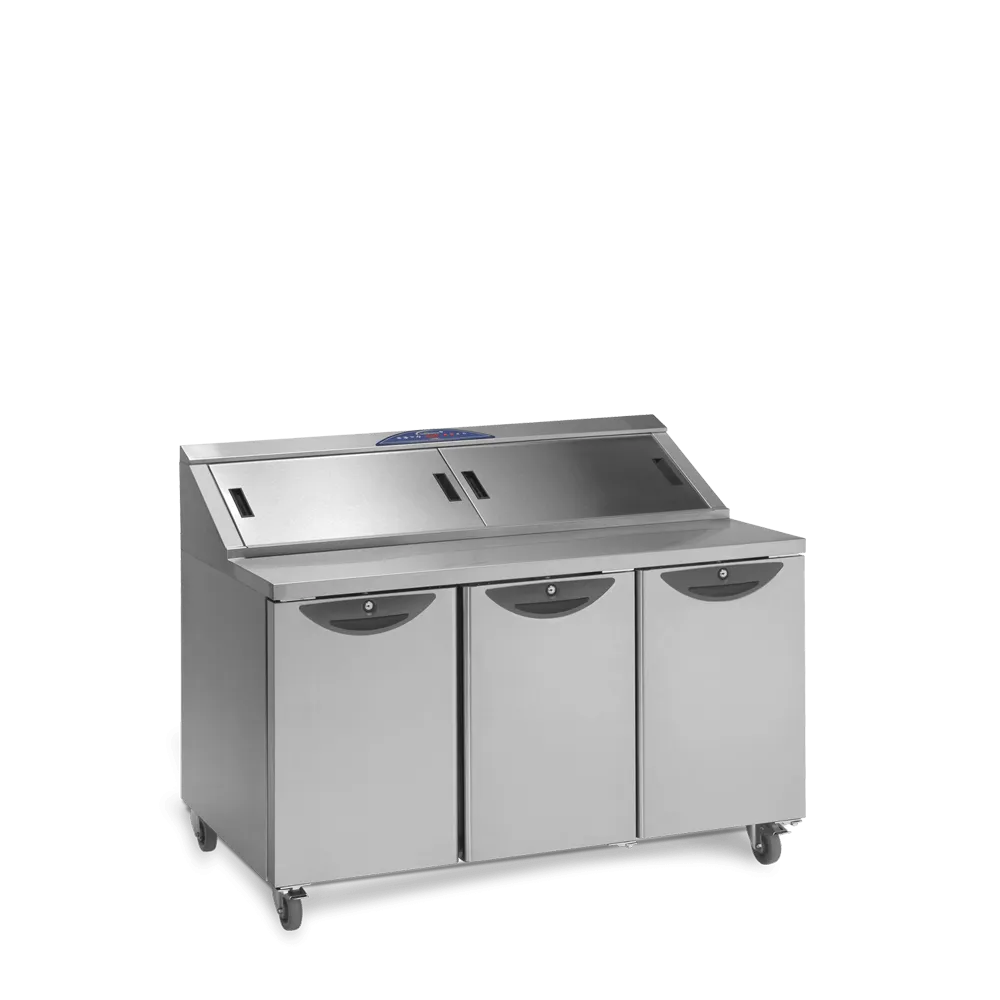 The spacious three-door Onyx CPC3 preparation counter with gastronorm storage features a CoolSmart controller designed to reduce energy consumption.