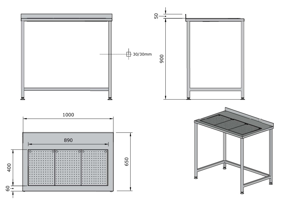 - Open base: provides space for undercounter equipment, optimizing your workspace.