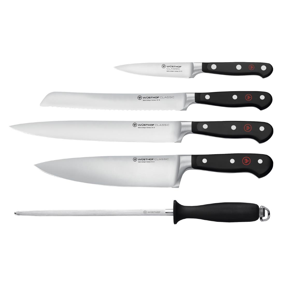Wüsthof Classic Knife Set (Chef's, Paring, Bread, Carving, Honing Steel) (5 Pack) - HW971